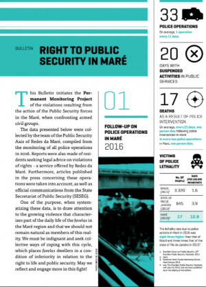 The research is a development of work that Eliana Silva undertook for her doctoral thesis where she analysed how distorted perceptions in relation to community residents in favelas affect the implementation of public security policy in these territories. In her work, Eliana demystifies the idea that favela residents are complicit in drug trafficking. Her research shows that the residents are the principle victims of a public security policy based on a war on drugs that considers favelas as ‘enemy territory’ to be conquered.